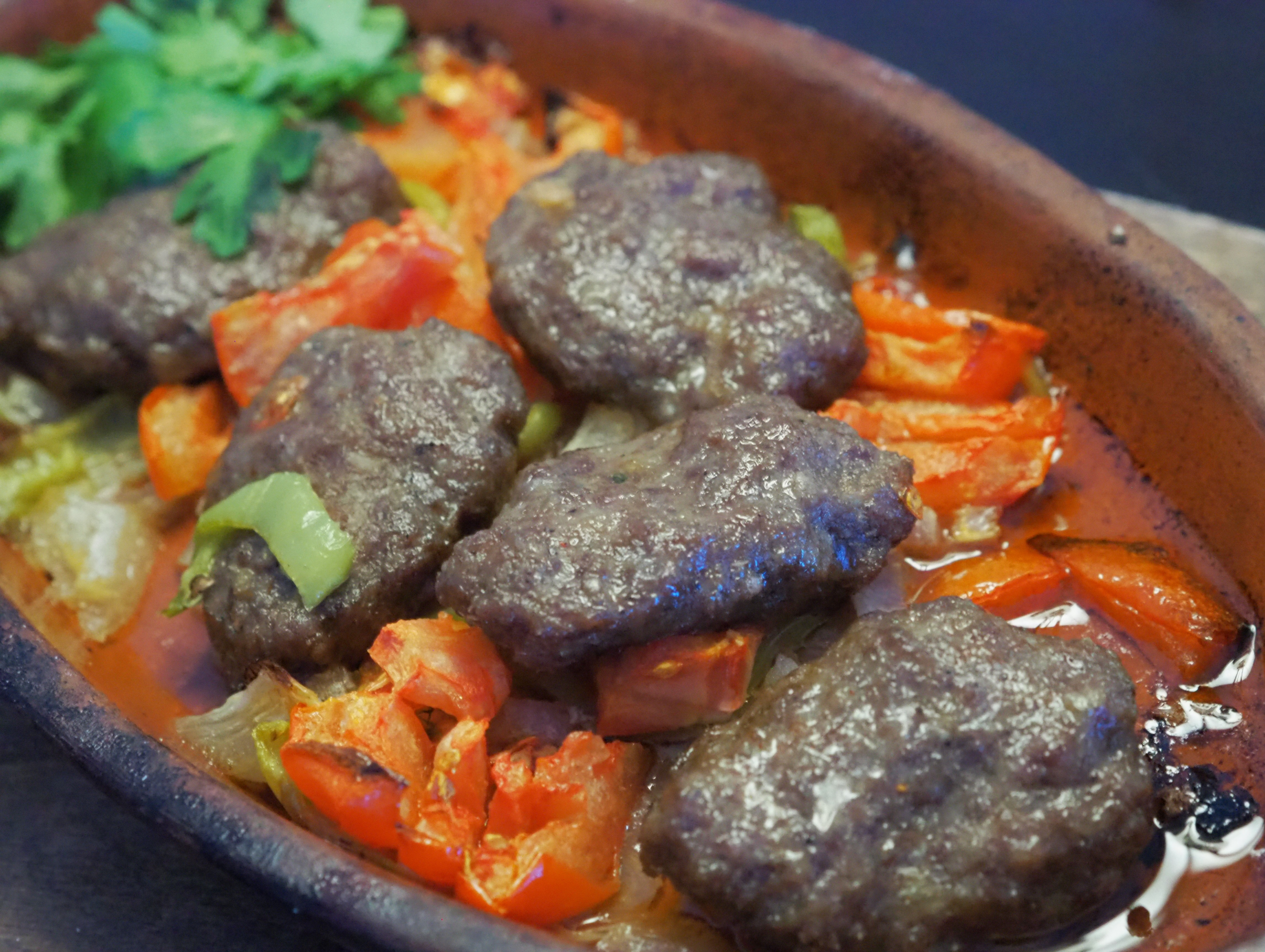Domates, nar ekşili sumaklı sos, maydanoz, soğan ile...